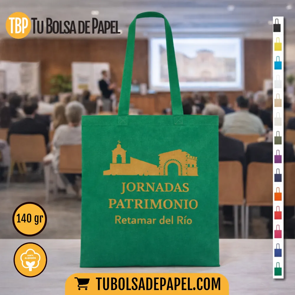 llevar al hombro y perfecta como bolsa de algodón personalizada para tiendas, eventos, ferias, congresos y campañas promocionales.