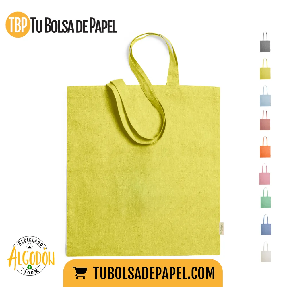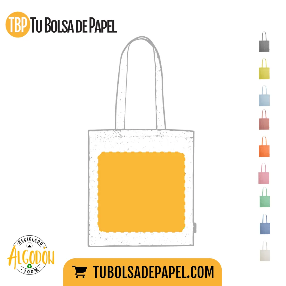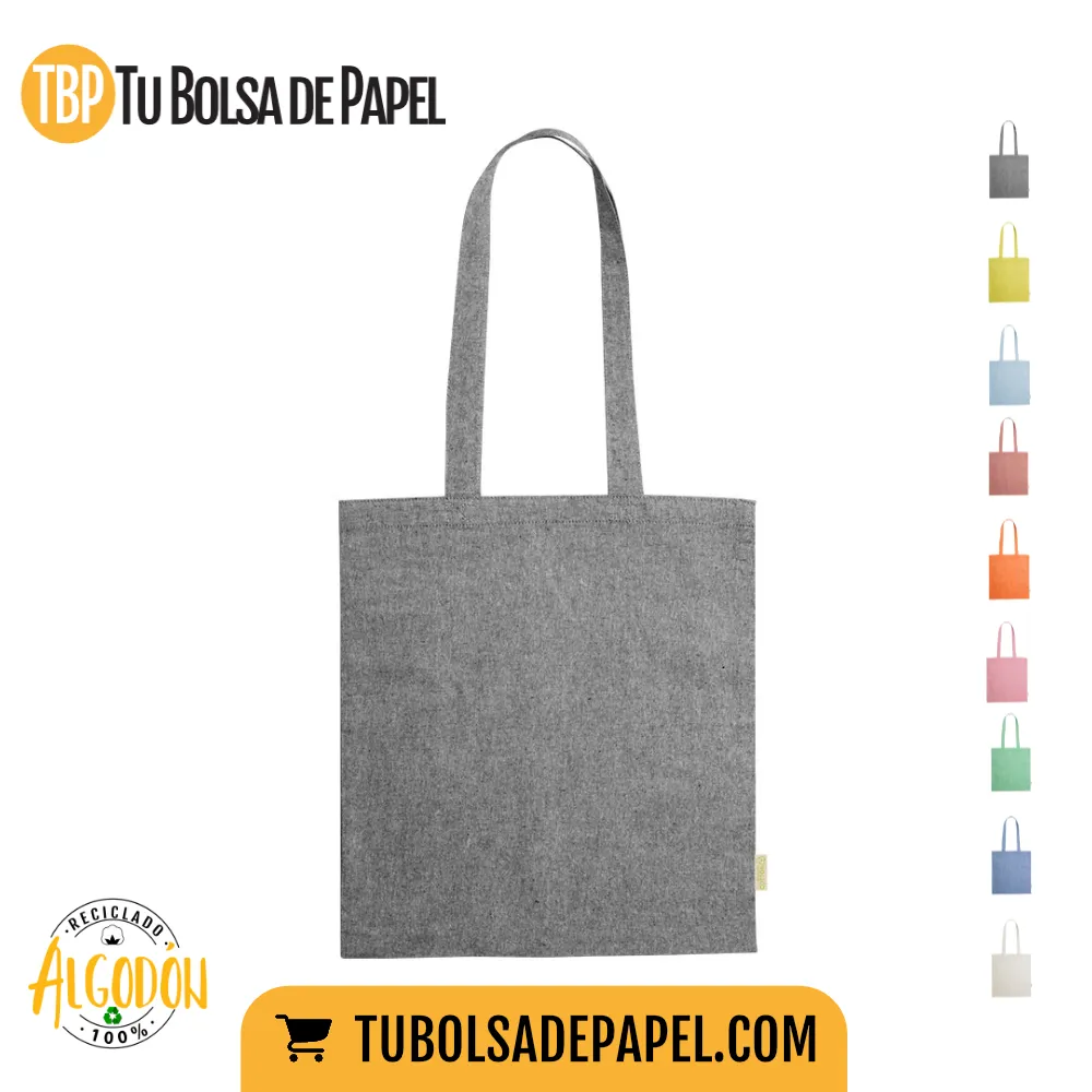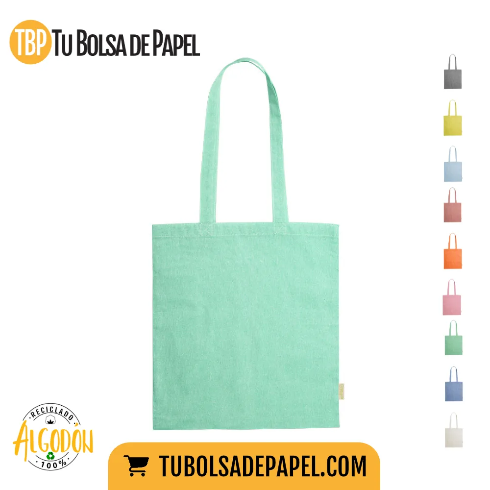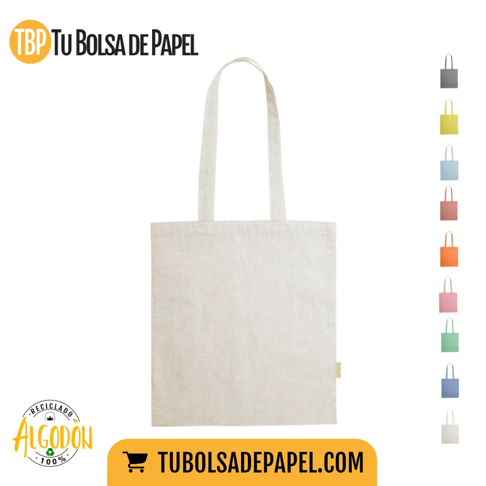 - 100% Algodón Reciclado: Fabricadas en 100% algodón reciclado de 140 g/m², nuestras bolsas son una elección eco-amigable que respalda la sostenibilidad y el cuidado del medio ambiente.