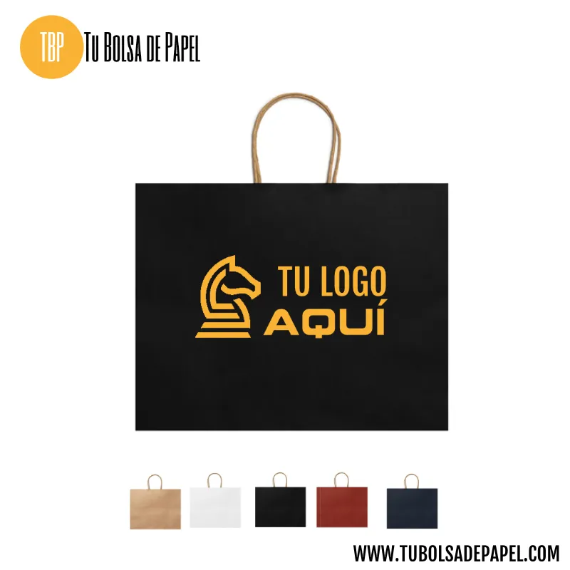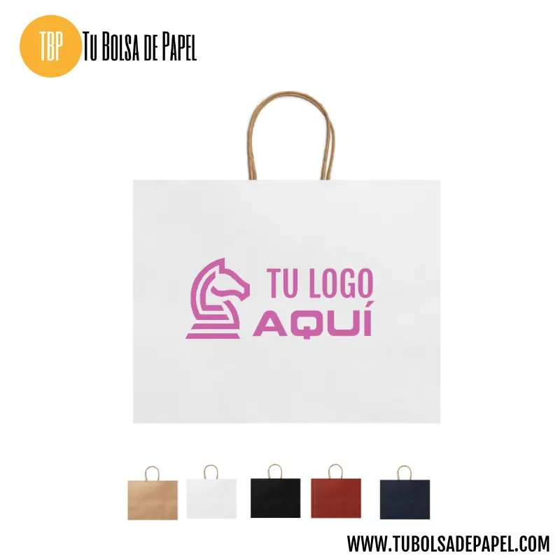 Destaca tu marca con estilo y comodidad utilizando nuestras Bolsas Asa Rizada 41 x 32x 12 cm Kraft personalizadas a todo color. Impulsa tu estrategia de marketing y deja una impresión duradera en tus clientes. ¡Haz tu pedido ahora y disfruta de la máxima personalización y calidad en tus bolsas de papel!
