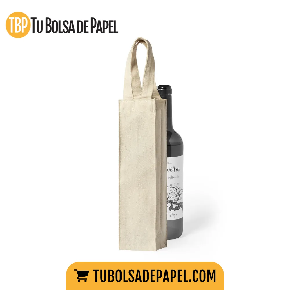 Bolsa para botellas realizada en 100% algodón de 220 gr con asa reforzada, ideal para regalos tipo botellas