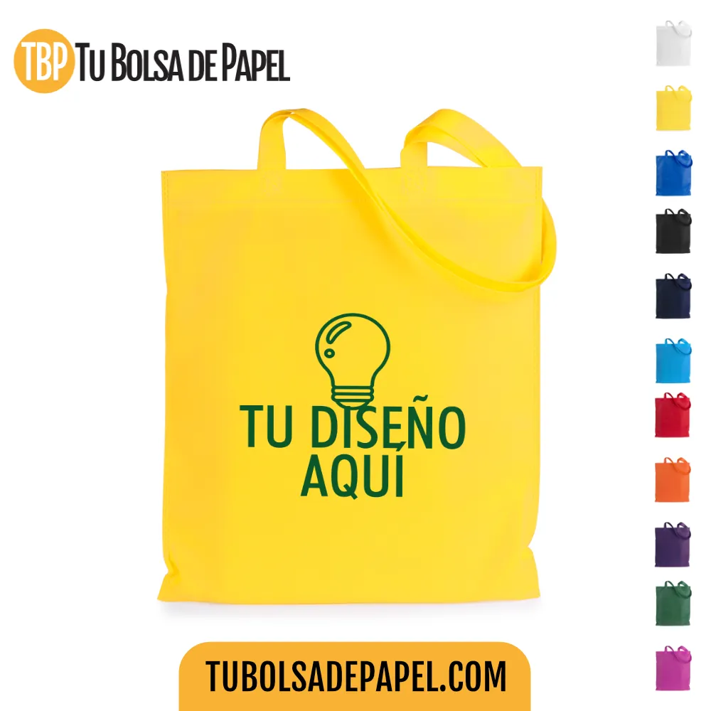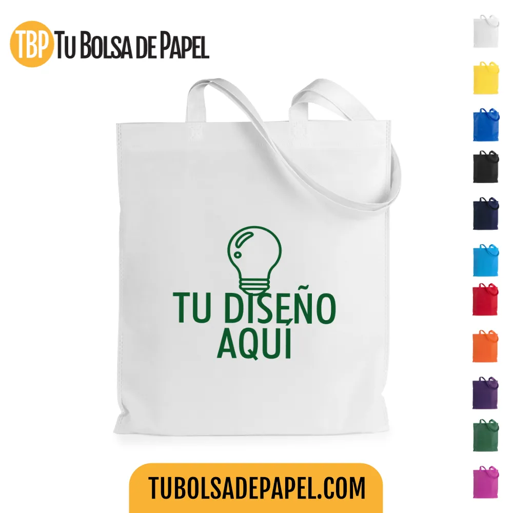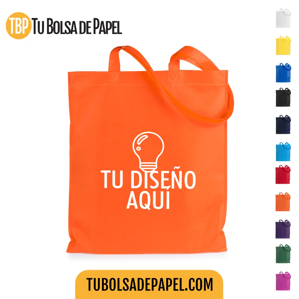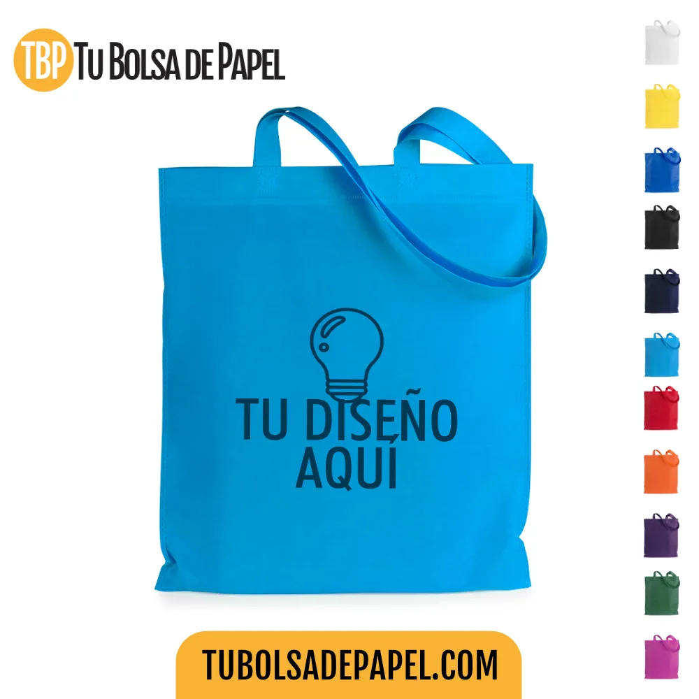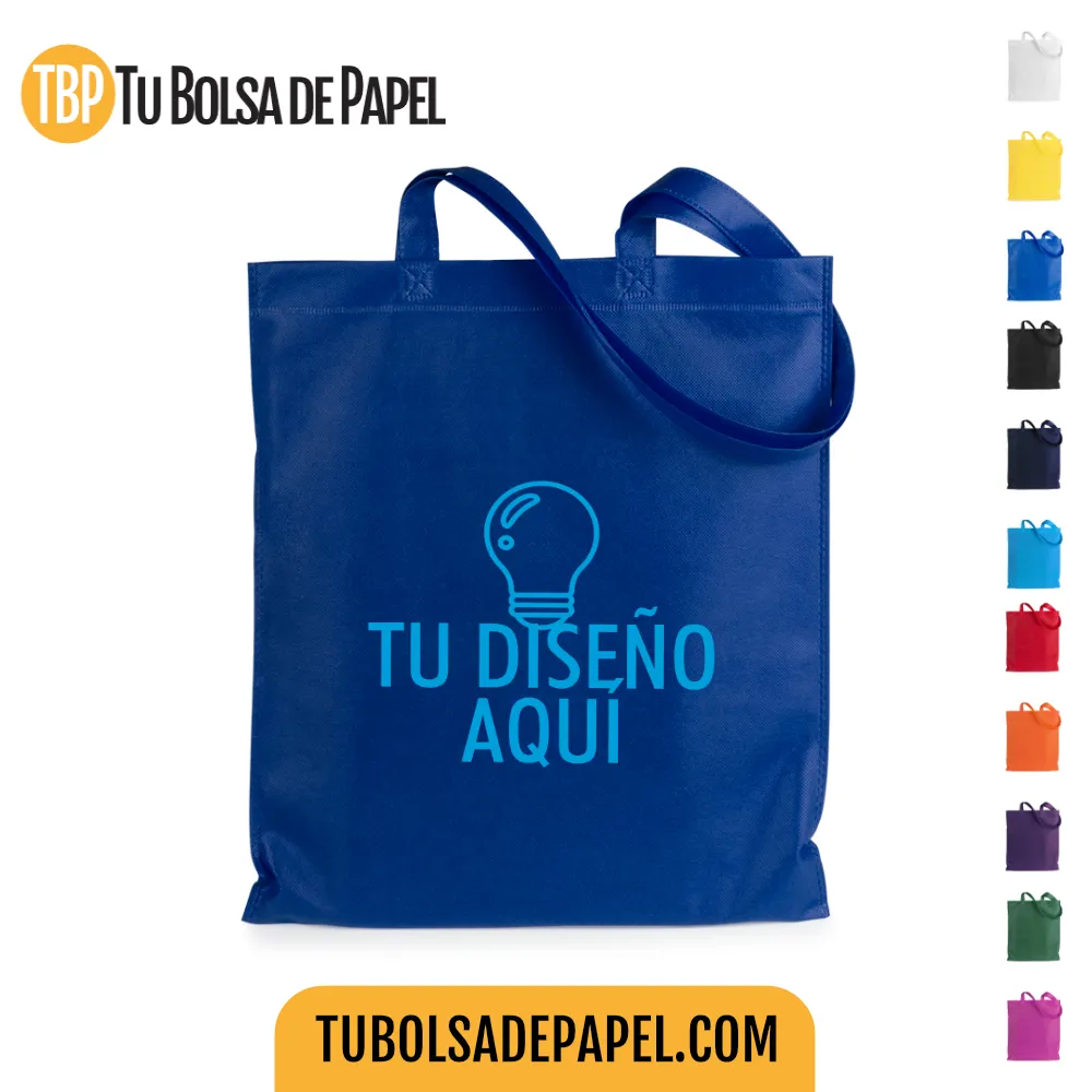 Bolsas realizada en non-woven de 80g/m2 en once colores especialmente indicada para todo tipo de complementos, artículos de farmacia y droguería, papelería, ferias de muestras, congresos y prendas de vestir. Con asa largas reforzadas mediante termosellado.