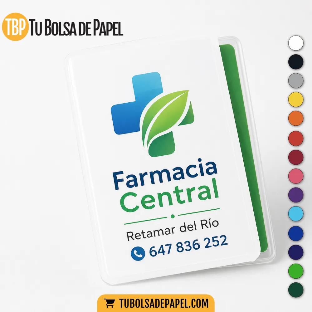 Las fundas dobles para tarjetas sanitarias personalizadas son un producto promocional económico, útil y fácil de repartir. Ayudan a mejorar la presentación de tu farmacia, refuerzan el recuerdo de marca y facilitan que tus pacientes conserven tus datos de contacto.