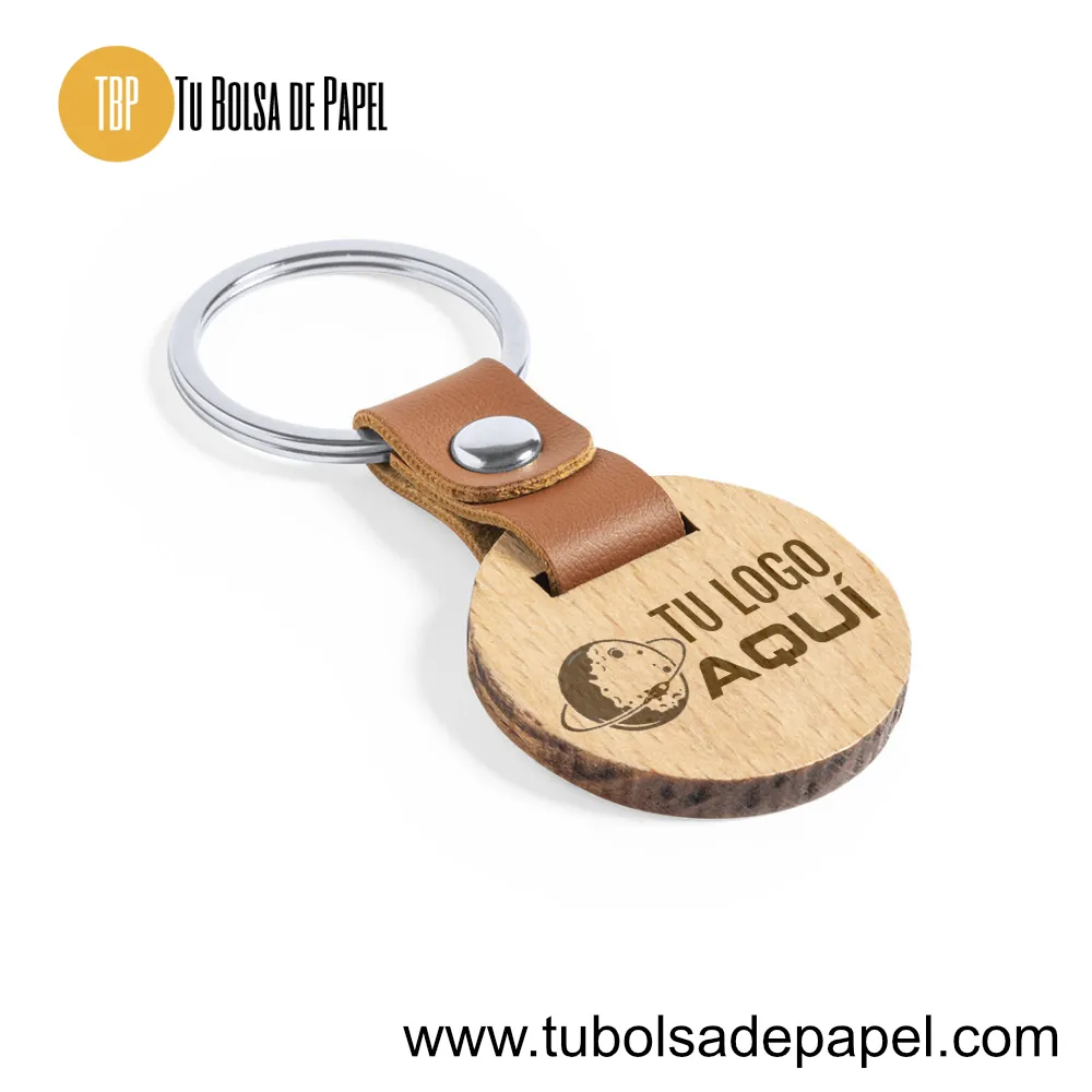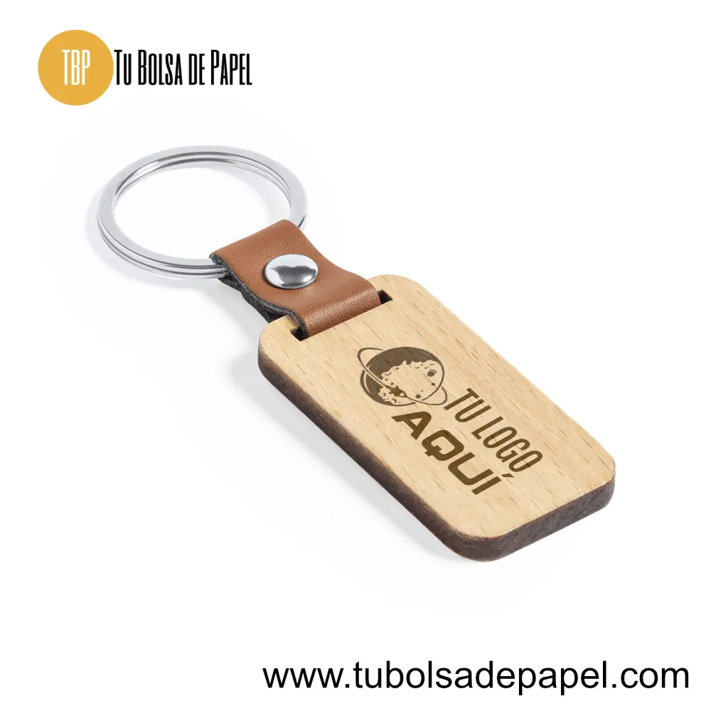 Palabras clave SEO: llavero madera polipiel personalizado, llavero grabado láser madera, llavero ecológico personalizado, regalos de empresa sostenibles, detalles boda madera y cuero