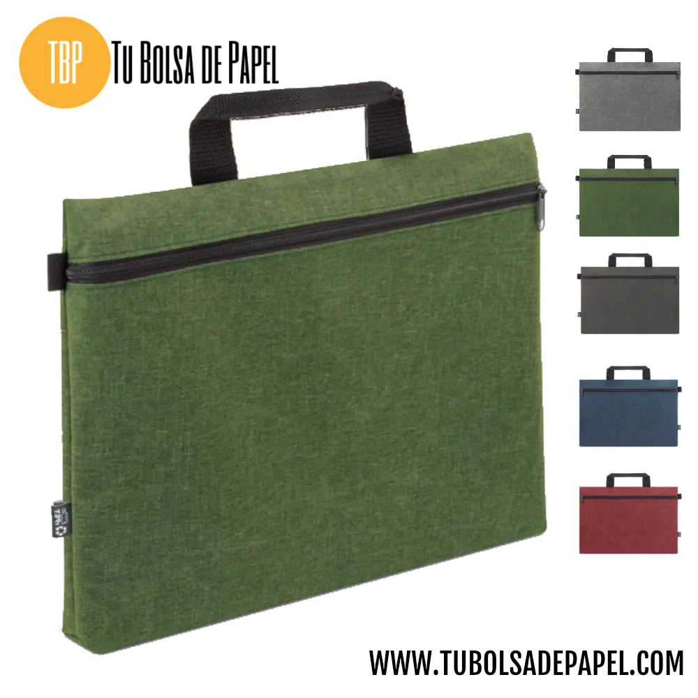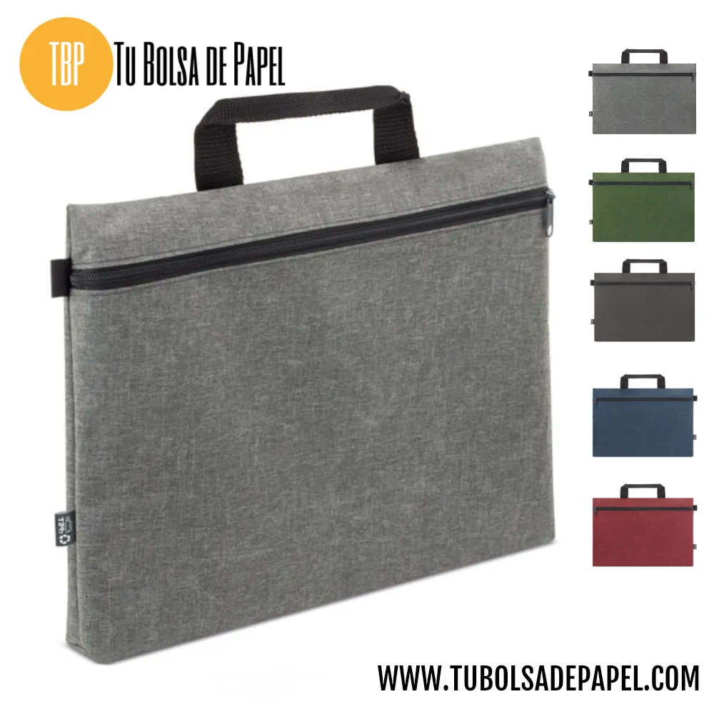 Maletín porta documentos en Rpet con cremallera y asa superior.