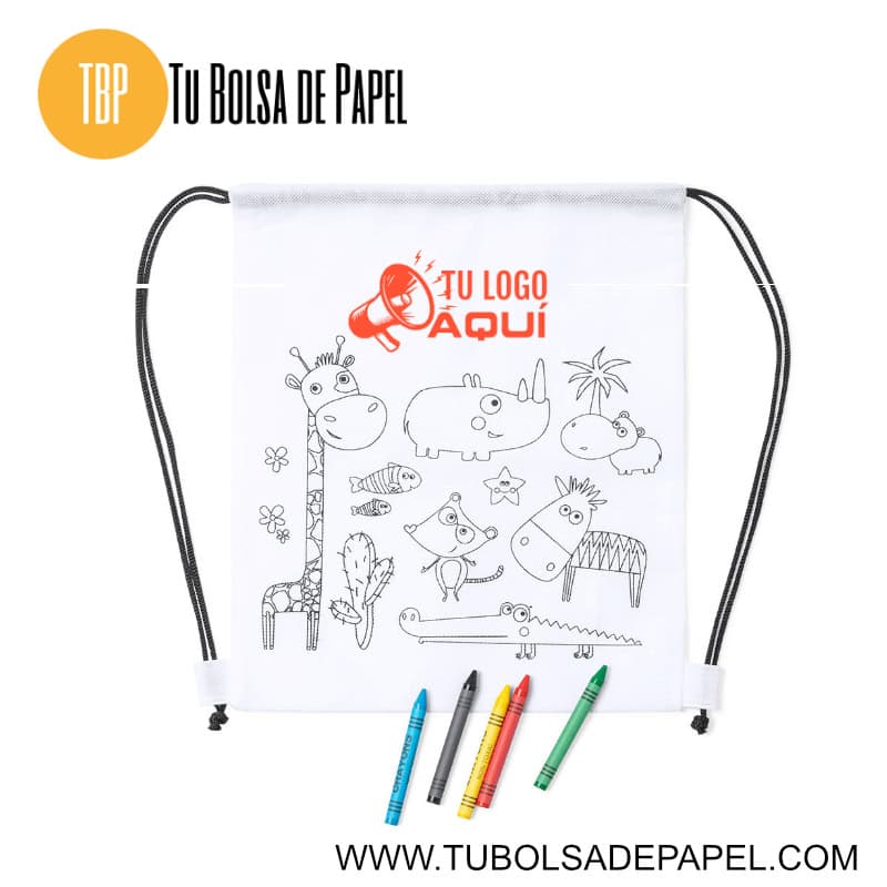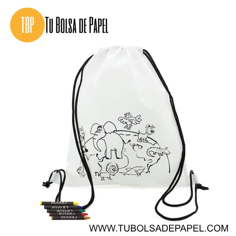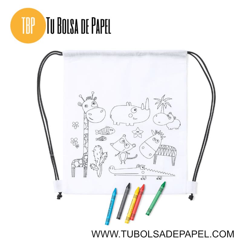 Esta divertida mochila infantil para colorear es perfecta para estimular la creatividad de los más pequeños. Fabricada en tejido non-woven de color blanco, la mochila de 25 x 30 cm está diseñada con una variedad de adorables animalitos en color negro, listos para ser coloreados.