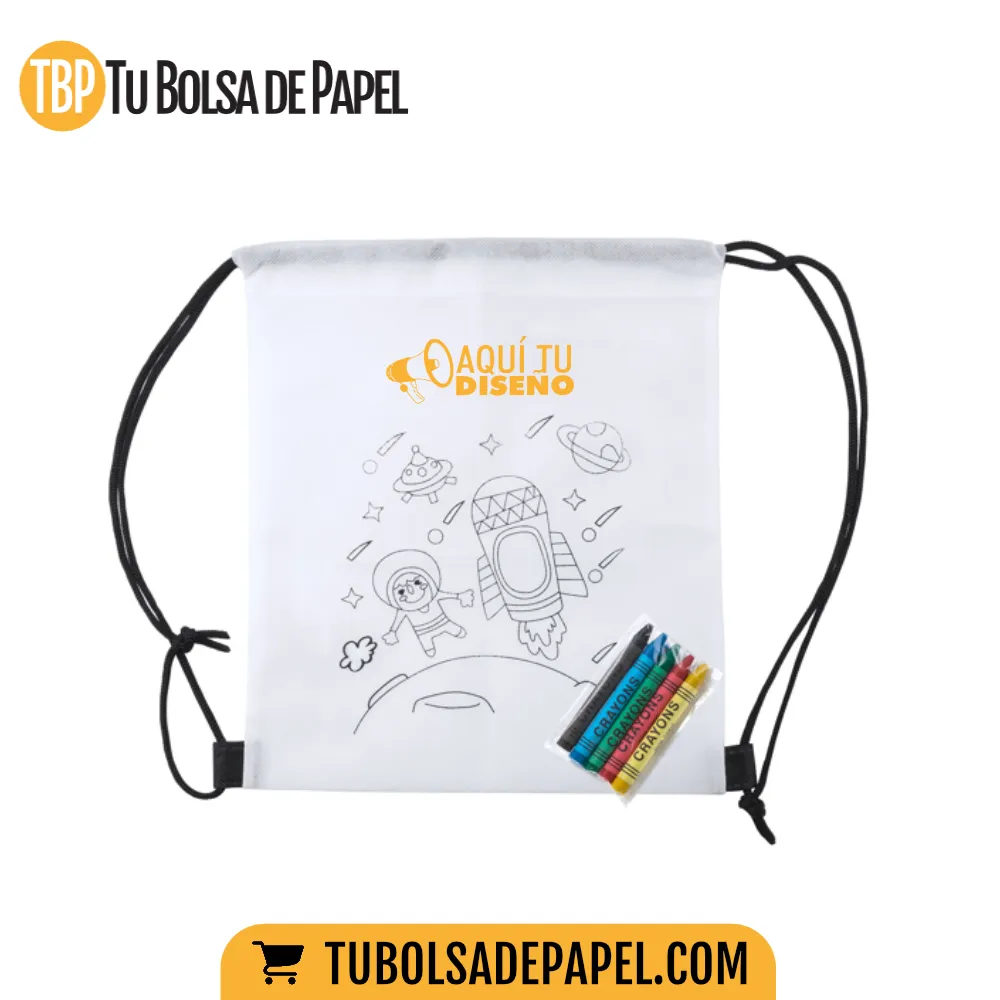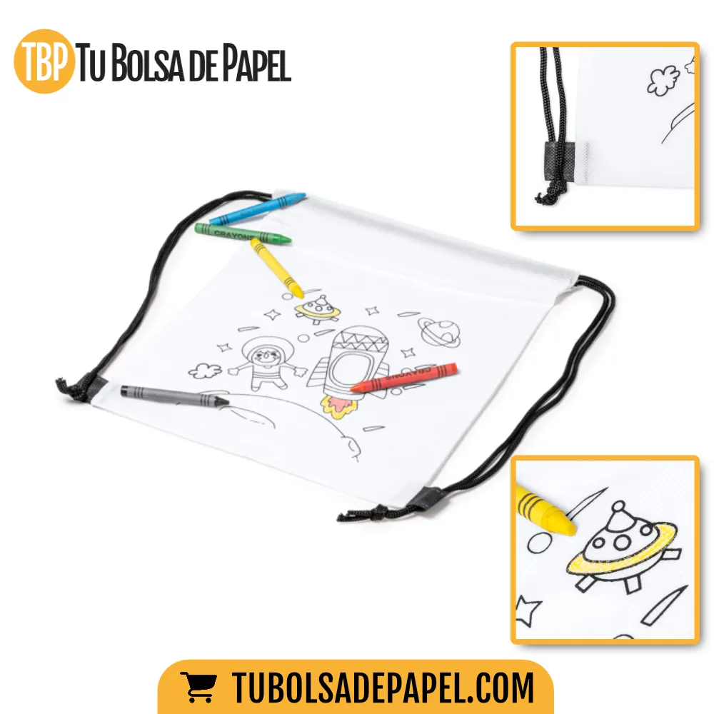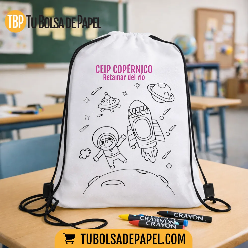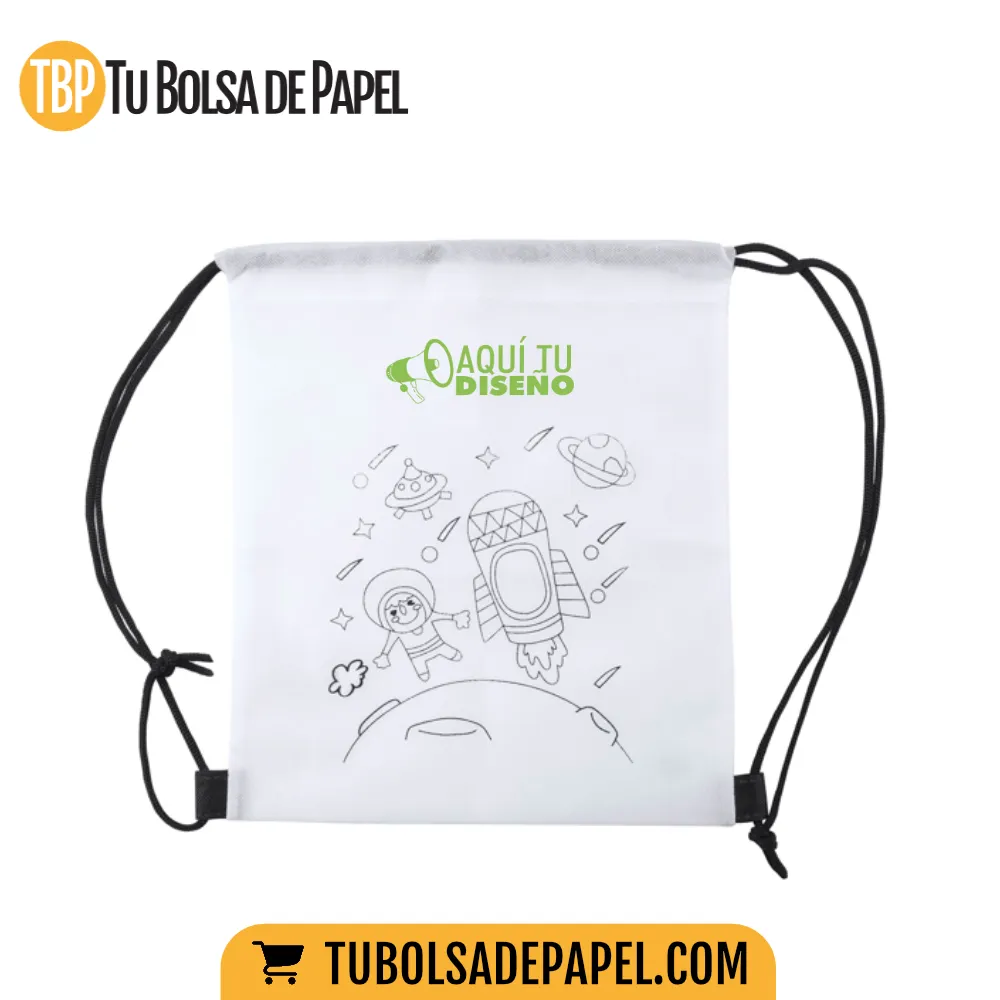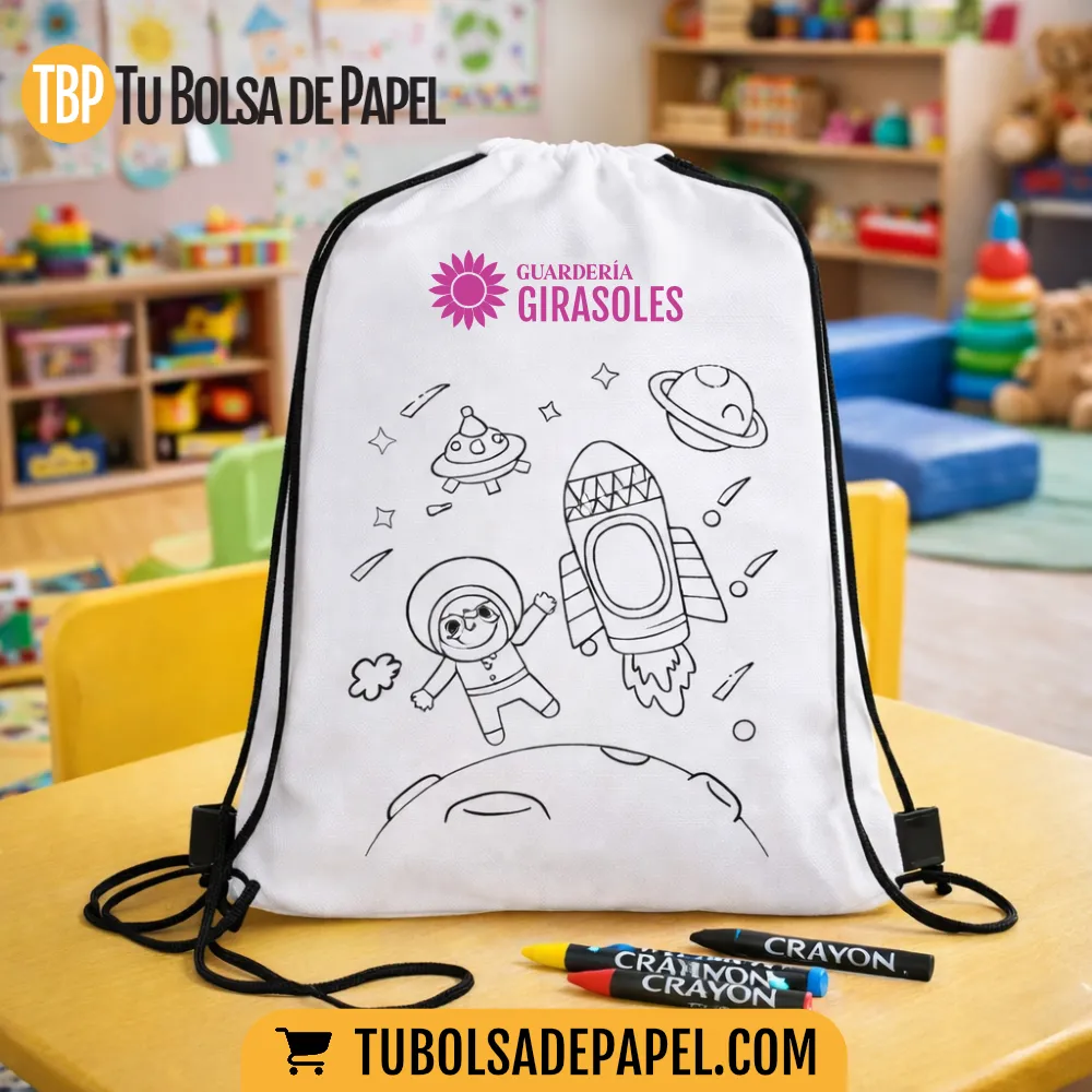 Convierte cada regalo en una actividad creativa con esta mochila infantil de cuerdas fabricada en non-woven. Su diseño eco con dibujos para colorear temática “Espacial” es perfecto para campañas de márketing, eventos escolares, campamentos de verano, restaurantes familiares o promociones infantiles en comercios.