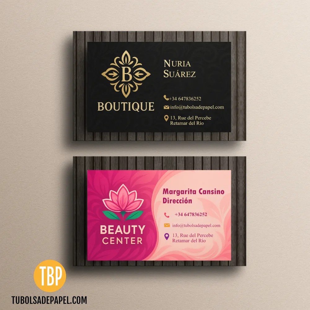 Nuestra medida estándar de tarjetas de visita es 8,5 cm por 5,5 cm tanto vertical como horizontal, realizadas en papel celulosa de 350 gr mate o brillo y están impresas a todo color por una o dos caras.